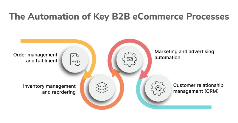 Automation is becoming a vital component of B2B eCommerce as the world becomes increasingly digital. Businesses can streamline operations, reduce errors, and increase productivity by automating key processes. This section will explore the automation of key B2B eCommerce processes, including order and fulfillment, inventory and reordering, customer relationship management (CRM), and marketing and advertising automation.