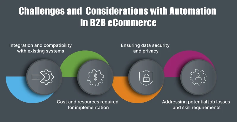 While automation can benefit B2B eCommerce businesses, some challenges and considerations must be addressed. In this section, we will explore some of the challenges and considerations associated with automation in B2B eCommerce, including integration and compatibility with existing systems, cost and resources required for implementation, ensuring data security and privacy, and addressing potential job losses and skill requirements.